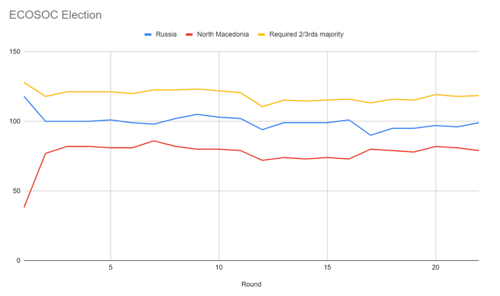 With no result possible elections were postponed until a later date to be confirmed. In the meantime there is a vacant seat at ECOSOC, and has been since 1 January 2023.